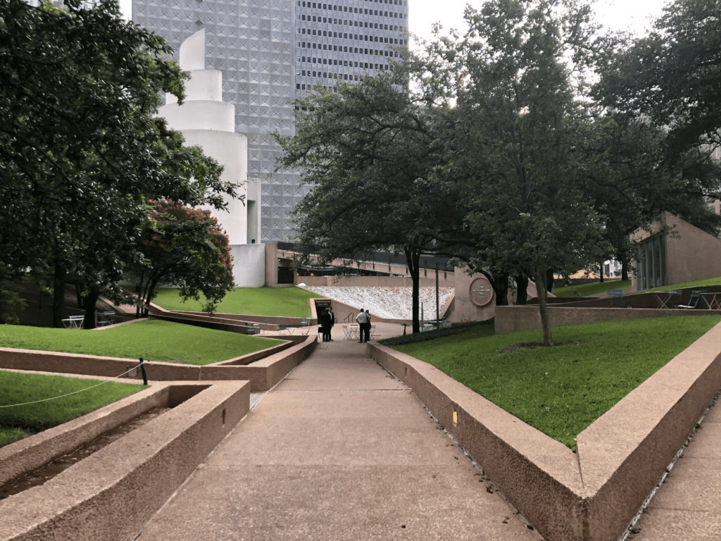 The construction of the square began in 1973 at the initiative of the Thanks-Giving Foundation, which cooperated with the local government. Philip Johnson was chosen as the architect of the project. The square was fifteen feet below ground level. A four-foot-high perimeter wall limited the view of the road, creating a separate green space in the city center. The decoration lacks religious symbolism. Water plays an important role here in the form of roaring fountains that mask the noise of the city. Construction was completed in three years. On Thanksgiving Day in 1976, President Gerald Ford named this square a national shrine.